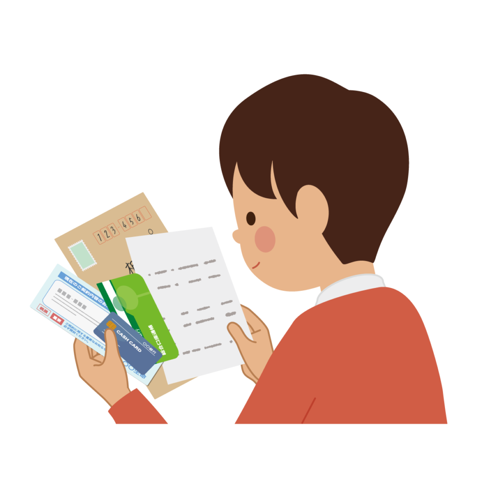 - お金にまつわるもの: 現金、通帳、印鑑、年金手帳、公共料金の領収書。